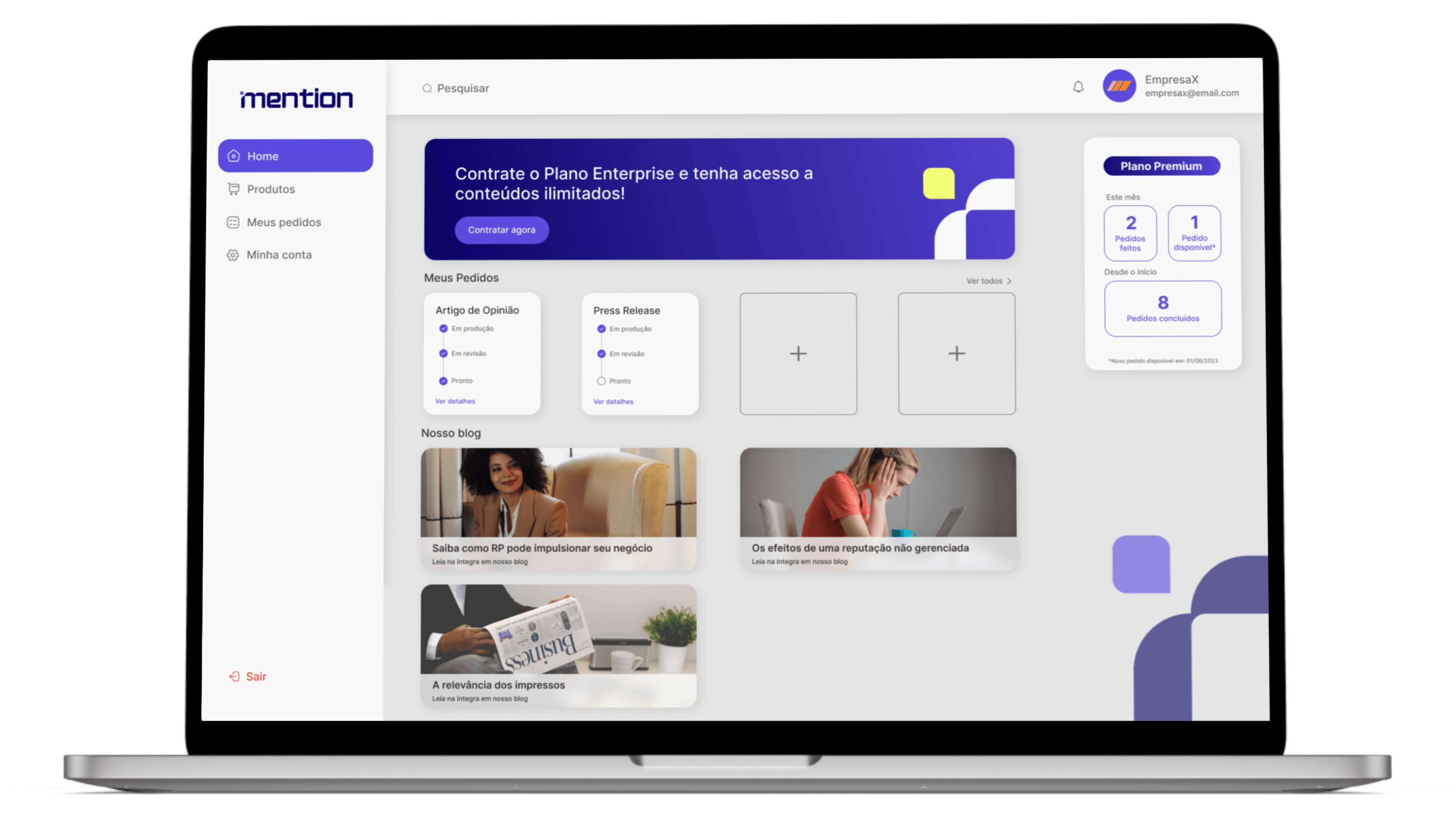 A Mention é a primeira startup de Relações Públicas da América Latina e, durante o ano em que fiz parte da equipe, fui responsável pelo desenvolvimento da primeira versão da plataforma.